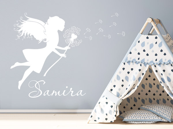 Wandtattoo Fee mit Pusteblume und Wunschname