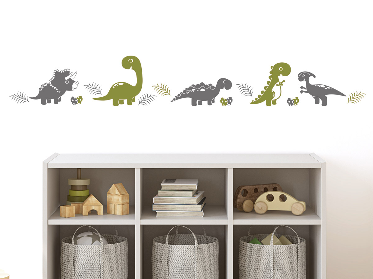 Dinos waren schon in unserer Kindheit ein Klassiker. Sie haben nichts an Faszination verloren, auch unsere Kids finden Dinos toll. Auf unserem Bild gibt es die Dino Bordüre zu sehen. Wer ein anderes Wandtattoo im Kinderzimmer für Jungen sucht, kann einfach "Dino" im Suchfeld eingeben, schon werden die passenden Ergebnisse angezeigt.
