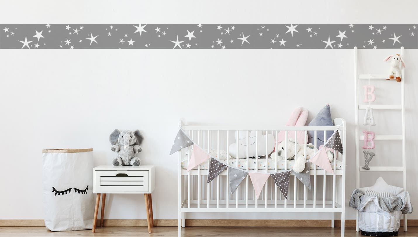 Die kindgerechten Bordüren gibt es in vielen verschiedenen Ausführungen und in zahlreichen bunten Farben. Eltern bleiben damit flexibel bei der Gestaltung des Kinderzimmers oder des Babyzimmers. Bringen Sie die Bordüre in der Wunschfarbe dort an, wo sie am besten passt. Ob als umlaufende Bordüre im ganzen Kinderzimmer oder als Akzent in einem abgegrenzten Bereich: Die Wandbordüren sind praktische Deko-Objekte.