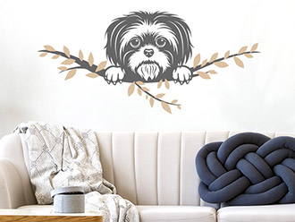 Im Lieferzustand bestehen die Hundemotive aus mehreren Bögen. Das hat einerseits produktionstechnische Gründe, hat aber auch den Vorteil, dass Sie Ihr Wandtattoo flexibel anordnen können. So können Sie nämlich die einzelnen Teile so an der Wand verteilen, wie es Ihnen am besten gefällt und wie es zum vorhandenen Platzangebot passt. Die bunten Blätter werden einfach nach Belieben am Ast aufgeklebt. Der Hundename findet seinen Platz neben, über oder unter dem eigentlichen Motiv.