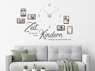 Jede Wanduhr ist in zwei Größen und vielen verschiedenen Farben erhältlich. So können Sie das Design der Uhr kreativ selbst bestimmen. Gestalten Sie die Uhr so, wie es am besten zur restlichen Gestaltung der Wände passt. Gewusst? Einige Uhren bieten zudem die Möglichkeit, das Ziffernblatt mit Fotos zu erweitern. Ganz klar: Eine Uhr mit eigenen Bildern ist ein Unikat! Diese Dekoration macht Ihnen so schnell keiner nach.