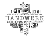 Gestalten Sie das Büro bzw. den Arbeitsplatz besonders kreativ mit der zweifarbigen Wandtattoo Wortwolke Handwerk.