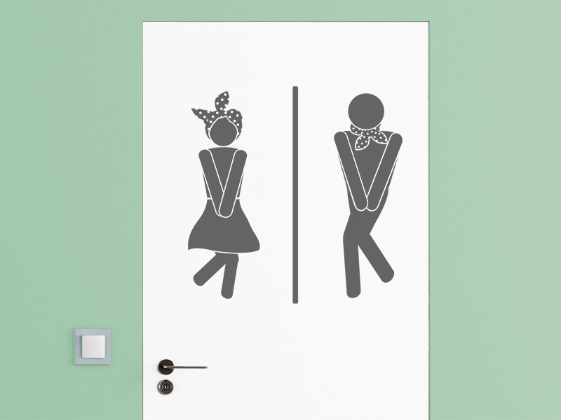 Ganz ohne Worte weisen diese beiden lustigen Figuren als WC Symbole Freunden und Familie den richtigen Weg zum Bad oder zur Gästetoilette.