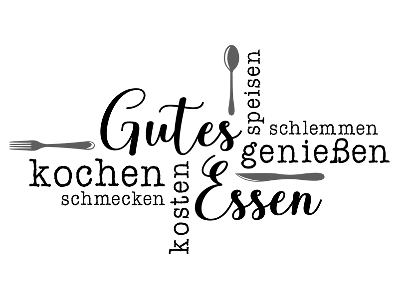 Wundervolles Wanddesign für Küche oder Esszimmer: die Wandtattoo Wortwolke Gutes Essen.