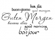 Guten Morgen (deutsch), buon giorno (italienisch), bom dia (portugiesisch), god morgon (schwedisch), buenos dias (spanisch), good morning (englisch), bonjour (französisch)