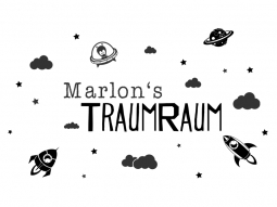 Das ausgefallene Wandtattoo Traumraum mit Wunschname, Raumschiffen, witzigen Aliens, Sternen und Wolken ist eine flexible und kreative Wandgestaltungsidee für die Wände im Kinderzimmer.
