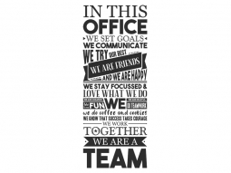 Motivierende und detailreich designte Wandgestaltungsidee für den Arbeitsplatz: das Wandtattoo In this office we are a team.