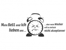 Lustiges Sprichwort mit originellem Weckermotiv für jeden, der gerne mal etwas länger liegen bleibt.
