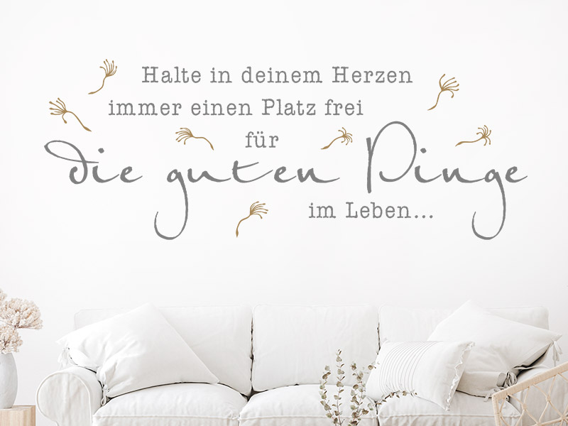 Für eine positive Stimmung in den eigenen vier Wänden: das Wandtattoo Die guten Dinge im Leben.