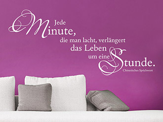 Wer seine Lieblingesweisheit gefunden hat, kann sie als Wandtattoo ganz bequem nach Hause bestellen. Wählen Sie vorher einfach noch die passende Farbe und die gewünschte Größe aus! Jedes Wandtattoo wird von uns auf Ihre Bestellung hin erst angefertigt. Wir haben keine Massen- oder Lagerware, sondern fertigen für jeden Kunden ein individuelles und persönliches Produkt an.